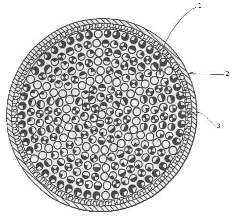 Для подавления пульсаций давления начальная зона смесеобразования и горения, в которой, как правило, зарождаются высокочастотные колебания, разделена на семь примерно одинаковых объемов с помощью антипульсационных перегородок, состоящих из выступающих за огневое днище форсунок, которые неплотно прилегают друг к другу по своим цилиндрическим образующим. Благодаря этому резко повышаются собственные частоты колебаний в объемах между перегородками, смещаясь далеко от резонансных частот конструкции камеры сгорания. Кроме того, выступающие форсунки растягивают зону горения, что также уменьшает возможность возникновения высокочастотных явлений. Зазоры между неплотно прилегающими друг к другу выступающими форсунками оказывают дополнительное демпфирующее влияние. Выступающая за огневое днище часть форсунки охлаждается горючим, проходящим по спиральным каналам (шнековому завихрителю) 6 внутренней втулки.