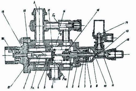 Исходное состояние агрегатов автоматики ПГСКлапаны пуска "О" 5, пуска "Г" 10, клапаны 18, 19 преднасосов "О" и "Г" - закрыты. В полуоткрытом состоянии находятся клапан отсечки "О" 7, клапан "Г" главной ступени 12. В состоянии открытия на предварительную ступень, находится также и регулятор расхода "Г" 14. Клапан 22 открыт.